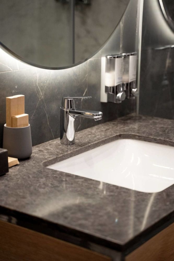 - Учитывайте освещение: В помещениях с недостаточным естественным освещением лучше использовать светлые оттенки мрамора и дерева, чтобы визуально расширить пространство․