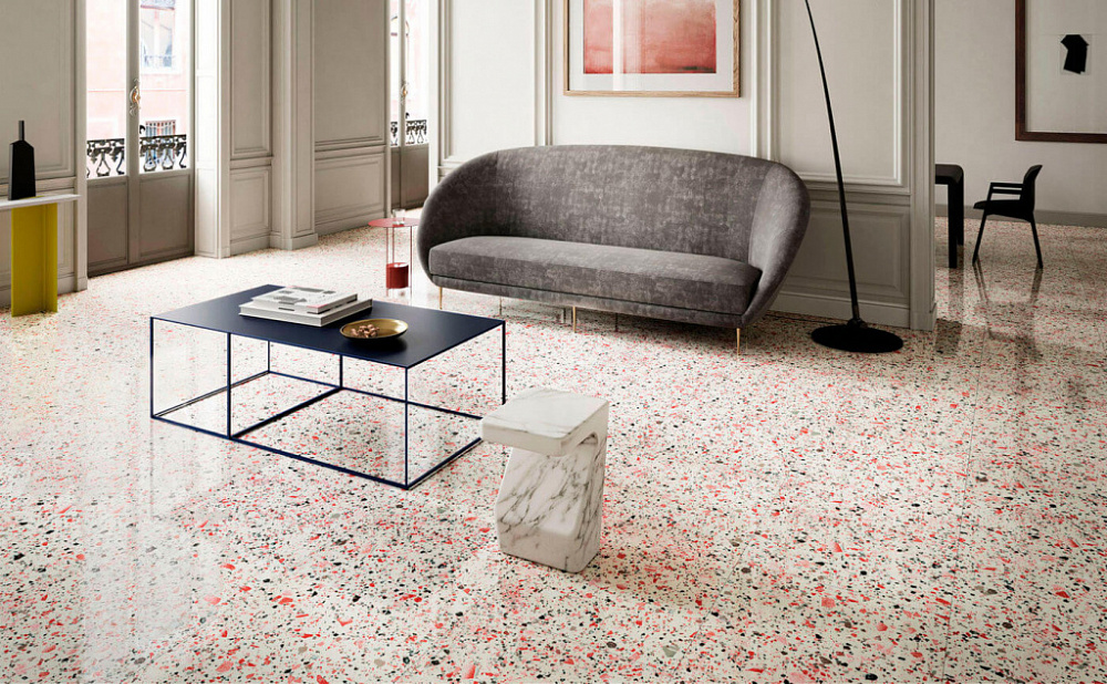 - Универсальность: Терраццо подходит для любого помещения, от ванной комнаты до гостиной. Он может быть использован как в жилых, так и в коммерческих зданиях.