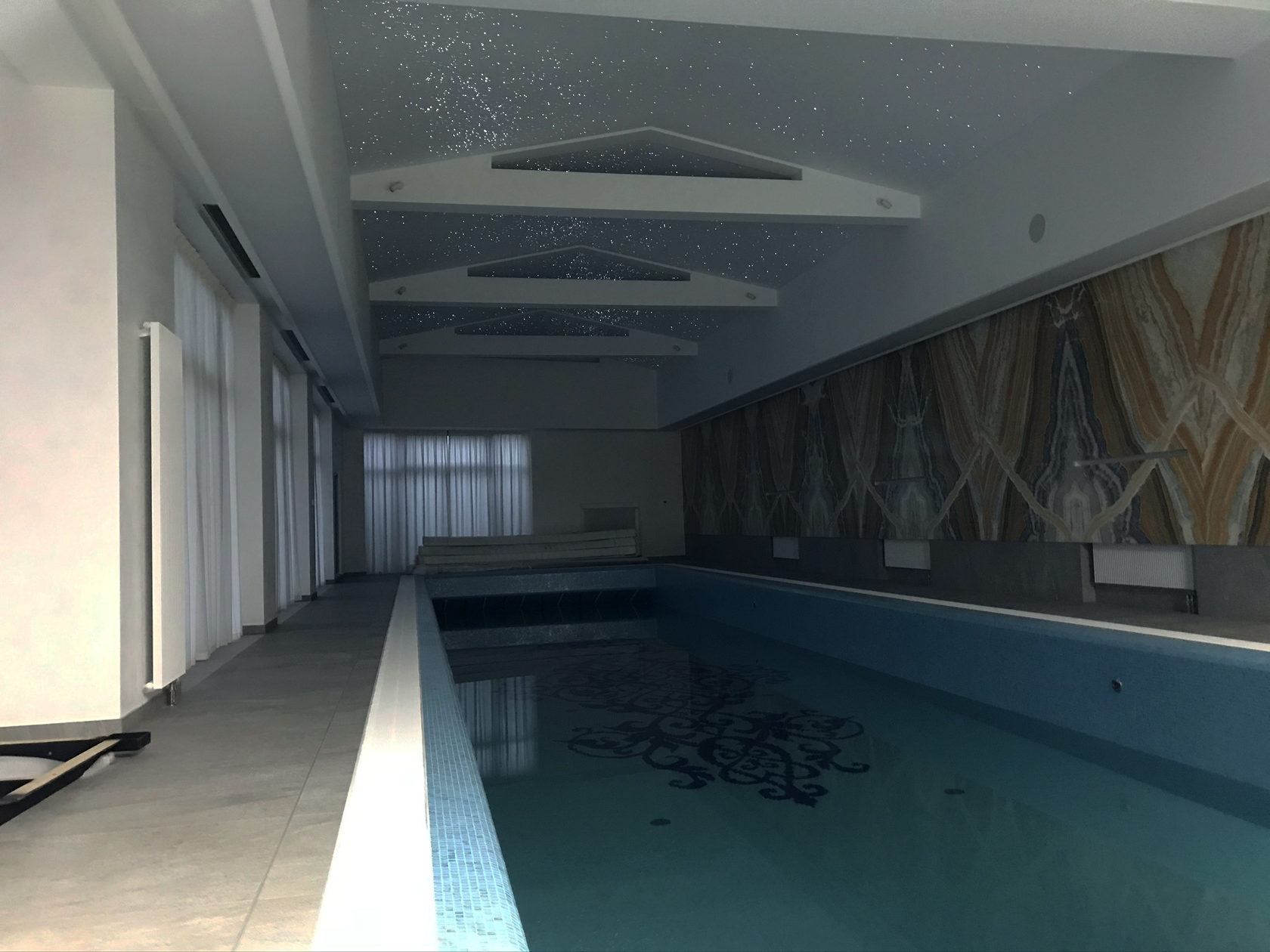 Мы решили остановиться на варианте с имитацией звездного неба с небольшими вкраплениями туманностей. Нам хотелось создать максимально расслабляющую атмосферу, поэтому выбрали мягкие, приглушенные цвета и избегали слишком ярких и кричащих элементов.
