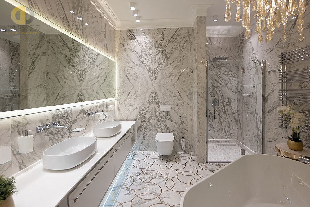 | Ванная комната с золотой сантехникой | Керамогранит под мрамор в ванной | Освещение в ванной комнате | Мебель для ванной комнаты | Аксессуары для ванной комнаты |