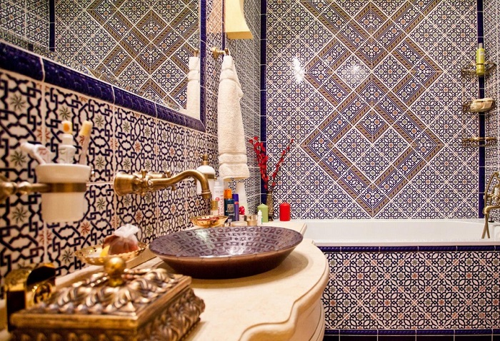 | Зеллидж плитка купить | Современная ванная в марокканском стиле | Восточные мотивы в дизайне ванной | Интерьер ванной комнаты с элементами ренессанса | Марокканский стиль в интерьере |