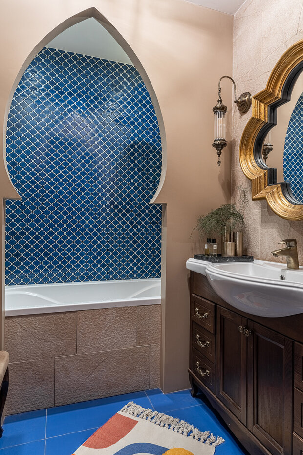 Идея заключалась в том, чтобы создать атмосферу роскоши и утонченности, но при этом сохранить практичность и функциональность современной ванной комнаты. Мы хотели, чтобы каждое утро начиналось с ощущения прикосновения к искусству, чтобы ванная комната стала местом, где можно расслабиться и насладиться моментом.