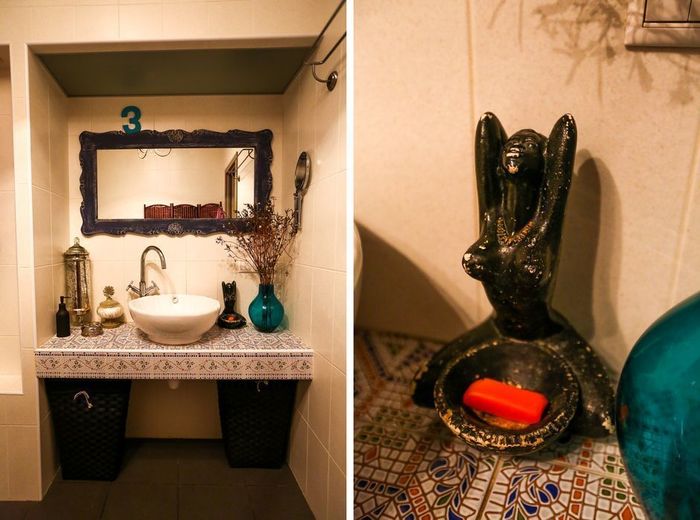 Чтобы создать гармоничный интерьер, важно сочетать текстильные органайзеры с другими элементами декора. Мы выбрали зеркала в золоченых рамах, светильники в стиле ретро и плитку с ренессансными узорами.
