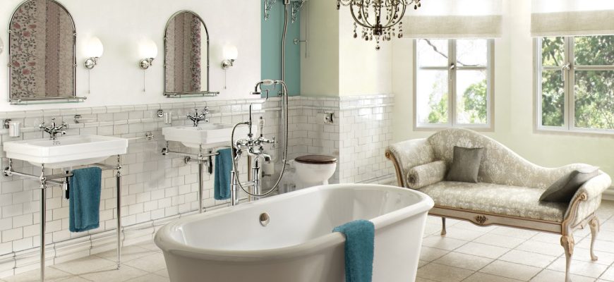 • Сантехника: Выбор классической сантехники с плавными линиями и изящными формами. Ванна на ножках, раковина на пьедестале, смесители из бронзы или золота.